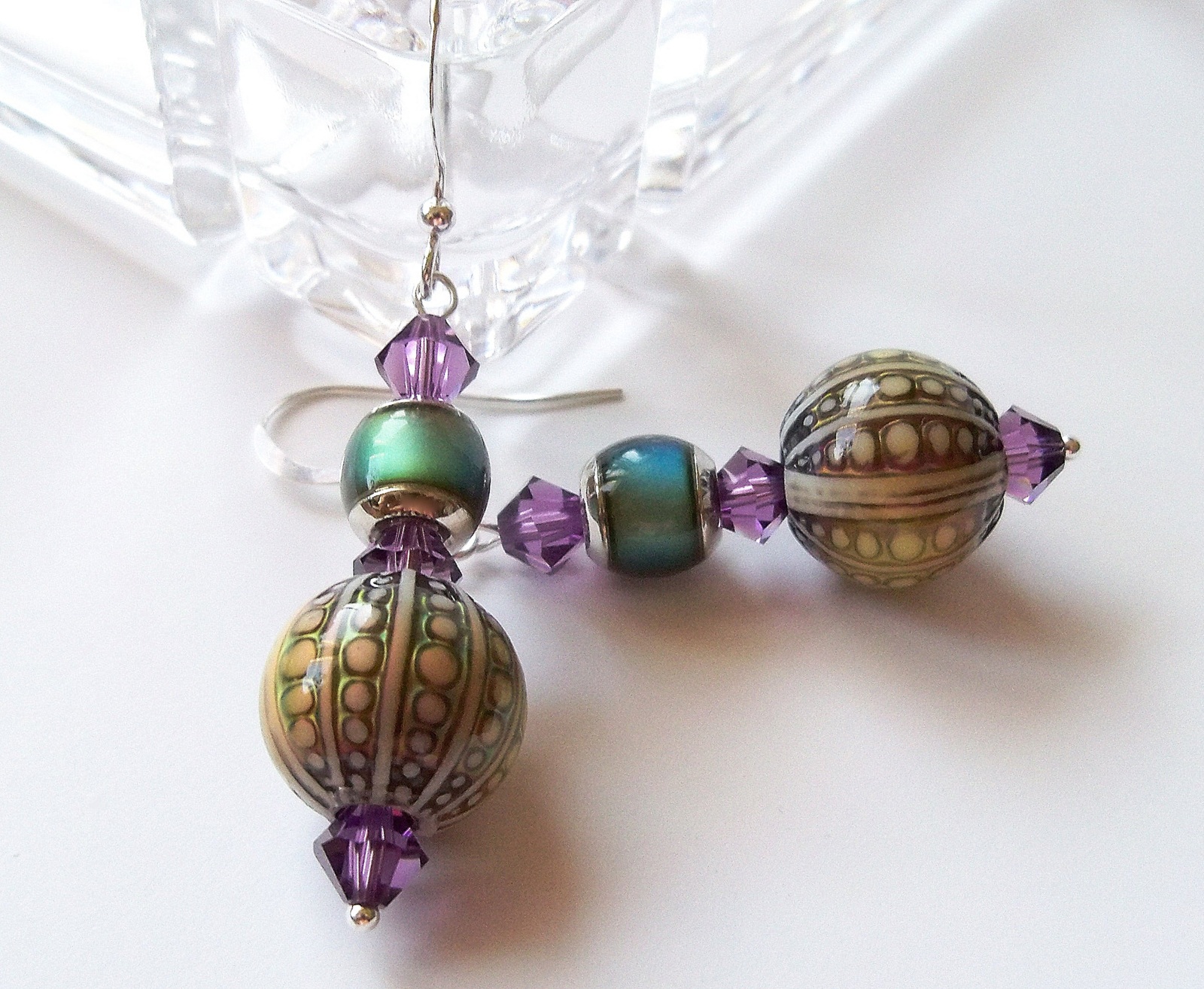 Channel your Retro style with these fun dangle style retro earrings are created featuring Mirage or color changing beads using thermo sensitive liquid crystal over polymer. These beads change colors in all hues of the rainbow, depending on temperature variations. Do you still have your retro mood rings?